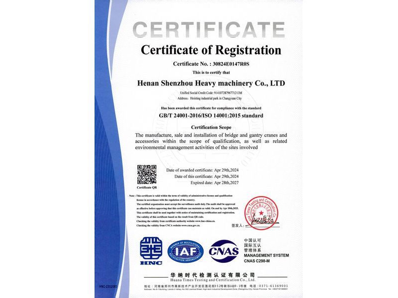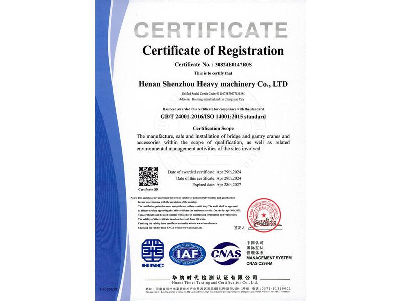 環(huán)境管理體系認(rèn)證證書(英文)