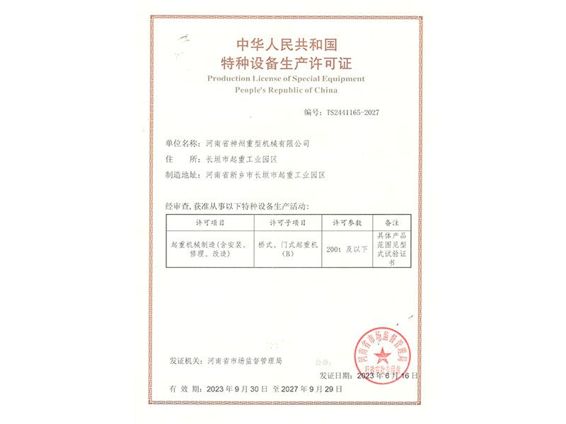 特種設(shè)備生產(chǎn)許可證